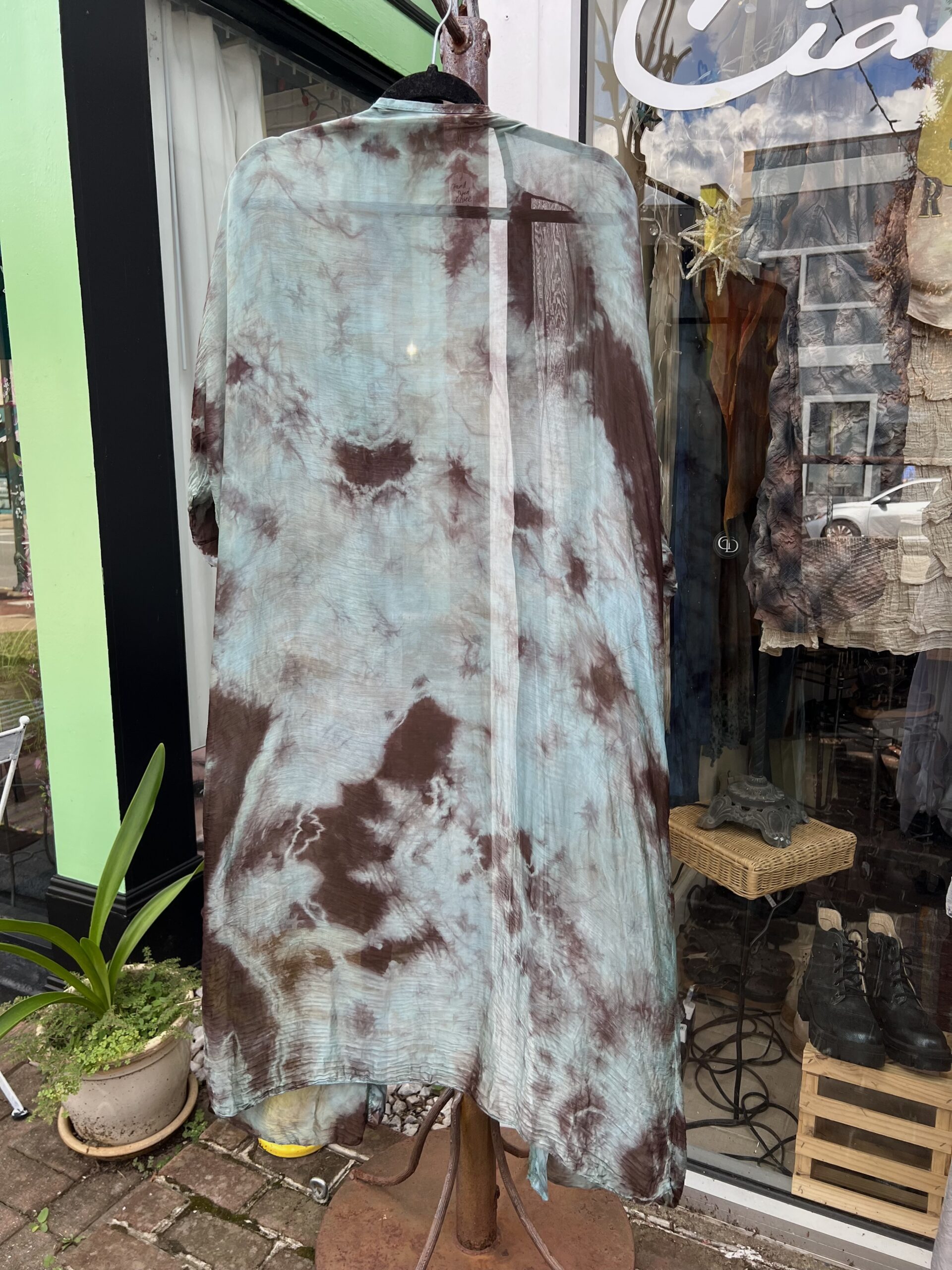This silky duster has been hand-dyed and is one size fits all!